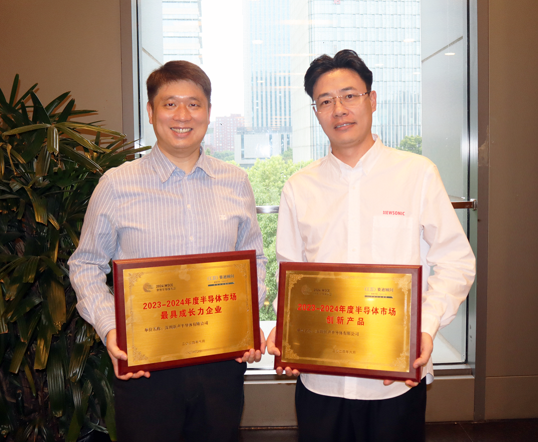 2024世界半导体大会期间,新声半导体荣获“年度半导体市场最具成长力企业”“年度半导体市场创新产品”两大奖项